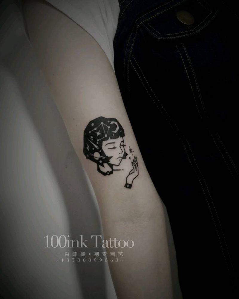 当前位置: 首页 >辽宁省大连市纹身店-一白雕墨 刺青画艺纹身图案>宇宙少女纹身图片_手臂清新人物原创成品纹身图案
