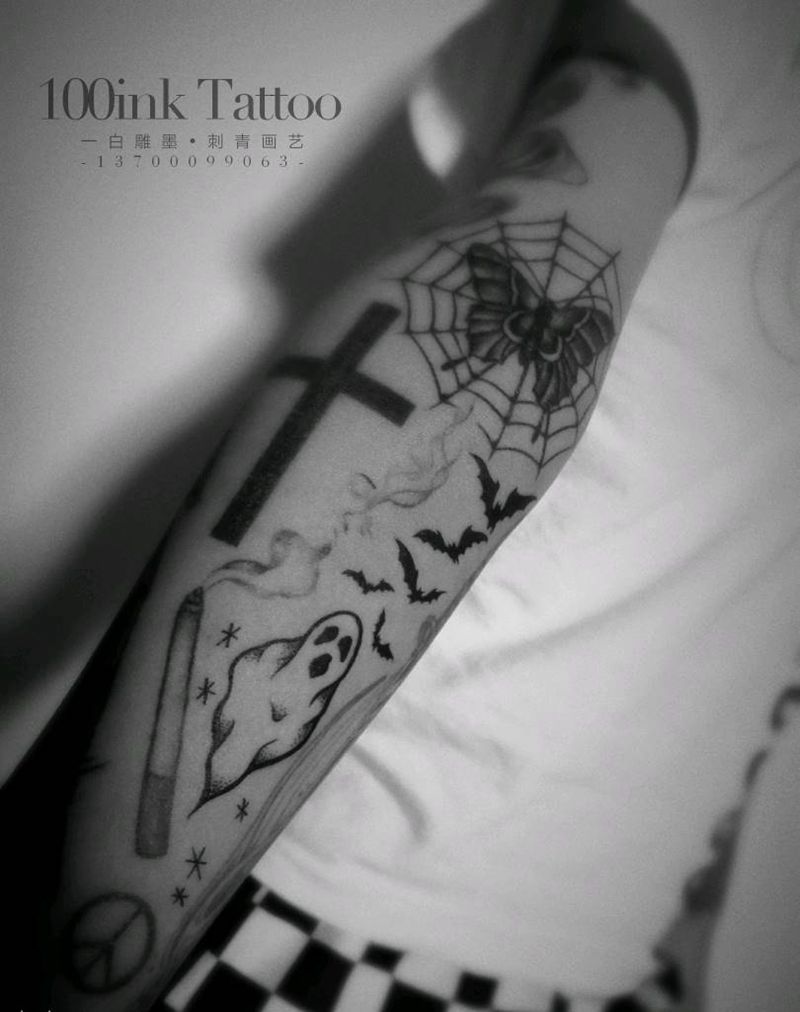 当前位置: 首页 >辽宁省大连市纹身店-一白雕墨 刺青画艺纹身图案>oldschool接图纹身图片_手臂欧美动物原创成品纹身图案