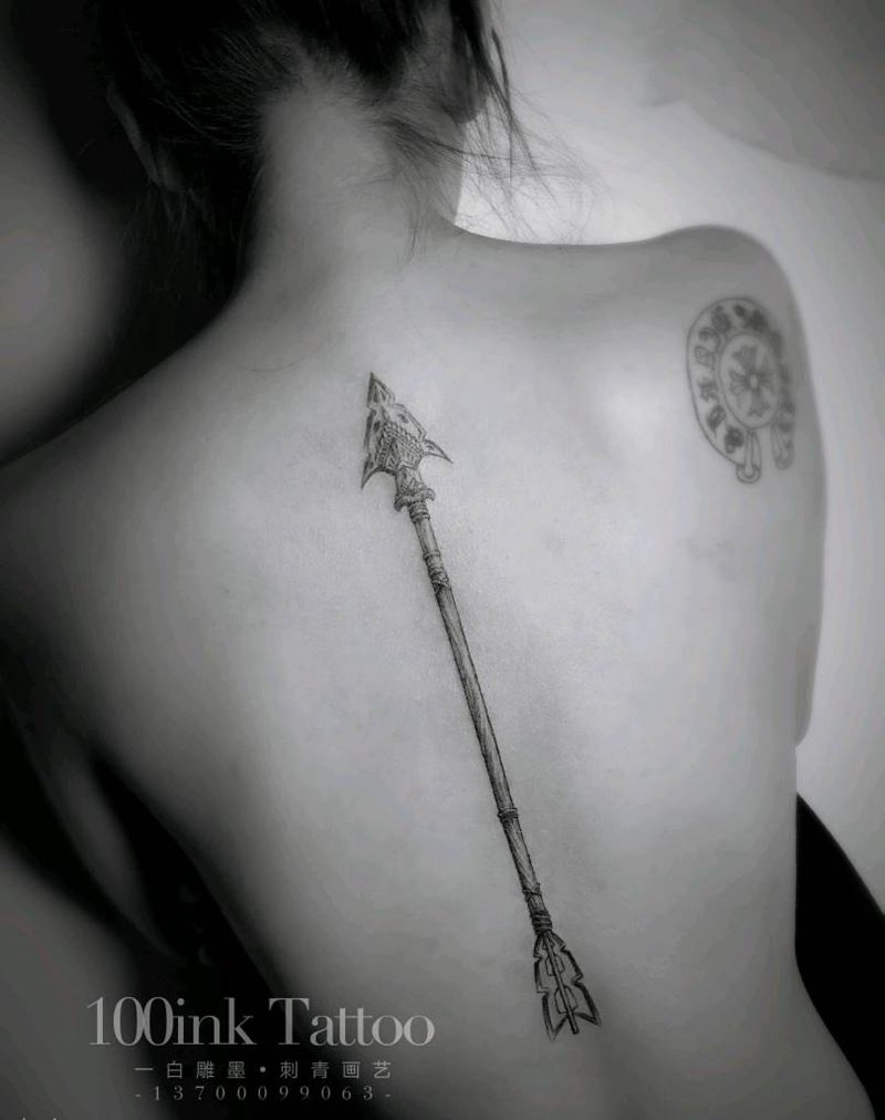 脊柱箭纹身图片_背部箭脊柱纹身图案