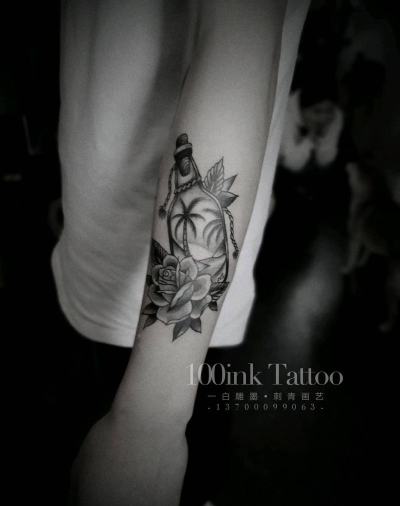 当前位置: 首页 >辽宁省大连市纹身店-一白雕墨 刺青画艺纹身图案>漂流瓶纹身图片_手臂Old School玫瑰 瓶子纹身图案