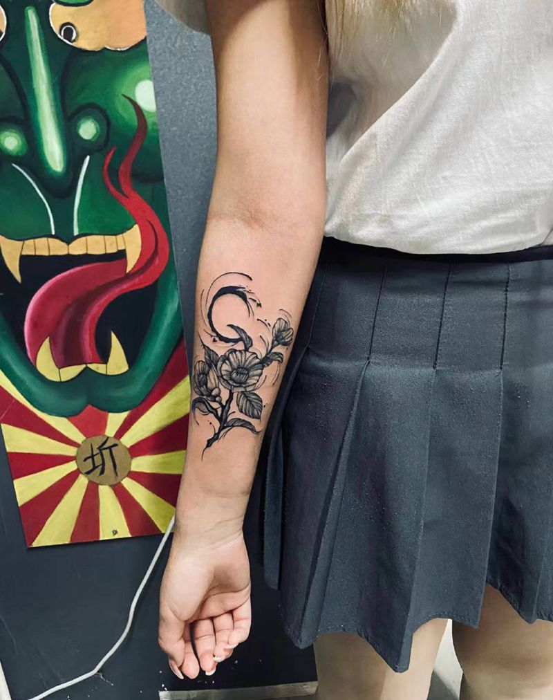 当前位置: 首页 >辽宁省沈阳市纹身店-骨雕部落刺青纹身图案>素花纹身图片_手臂点刺新传统素花花手臂纹身图案