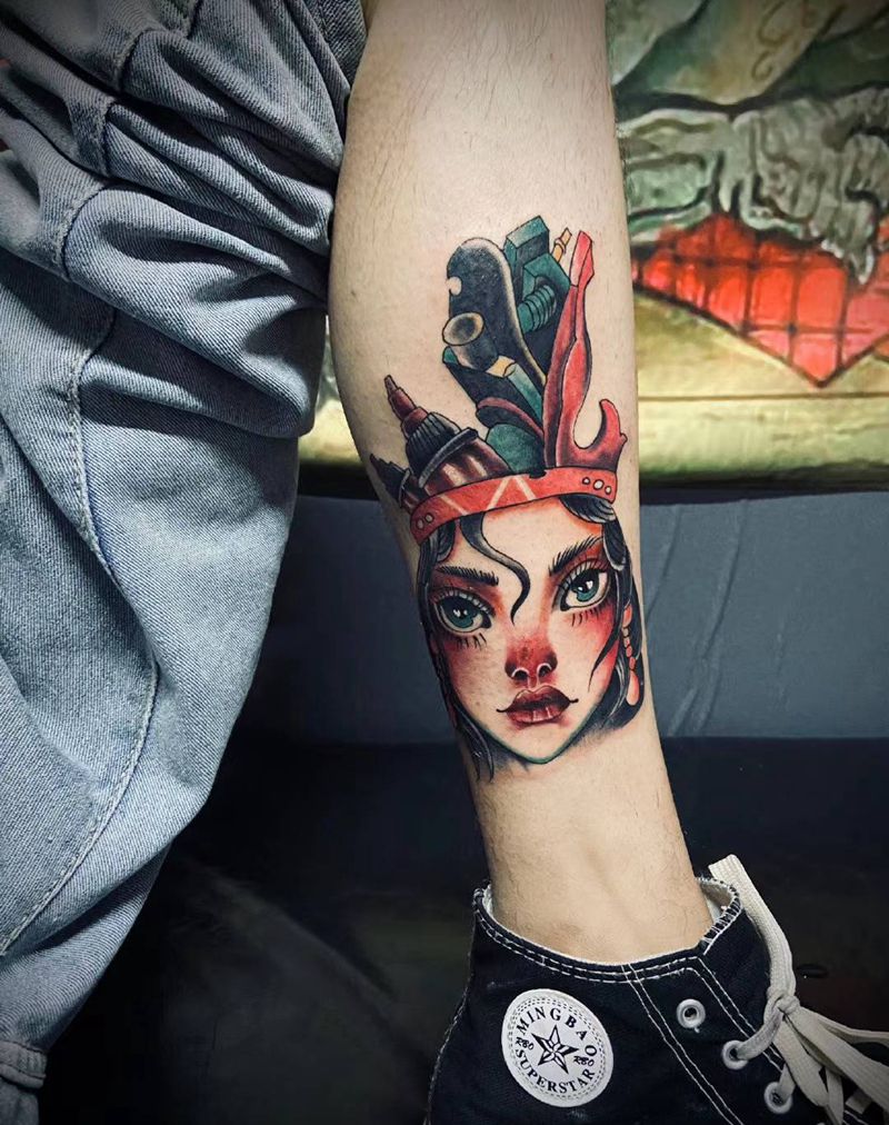 当前位置: 首页 >辽宁省沈阳市纹身店-骨雕部落刺青纹身图案>1纹身图片_腿部New School欧美小腿手背纹身图案