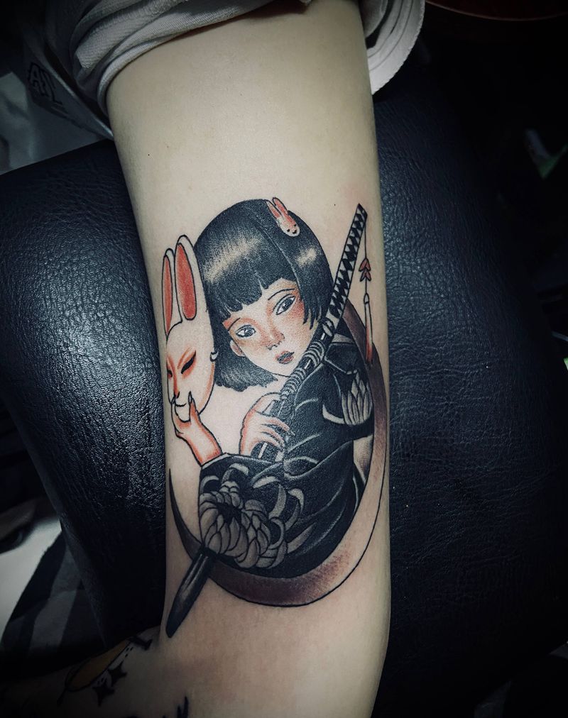 精致女孩纹身图片_手臂新传统老传统艺妓,大臂纹身图案