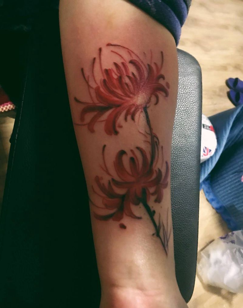 当前位置: 首页 >辽宁省沈阳市纹身店-骨雕部落刺青纹身图案>彼岸花纹身图片
