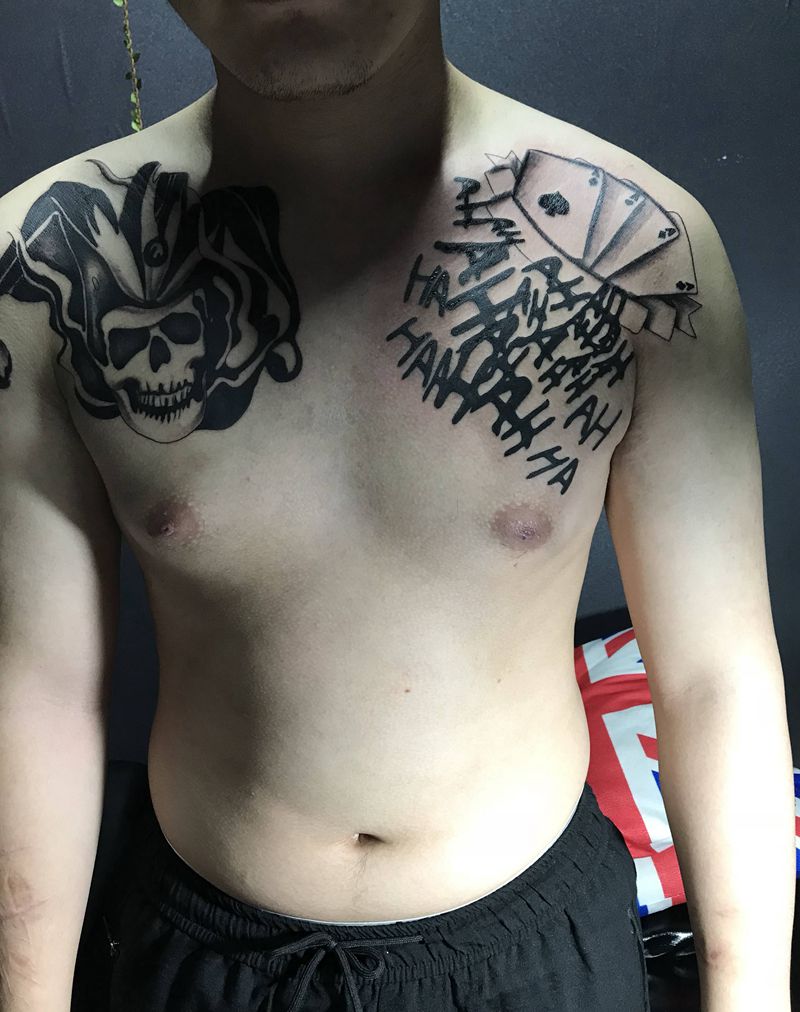 当前位置: 首页 >辽宁省沈阳市纹身店-骨雕部落刺青纹身图案>小丑同款纹身图片_胸部纹身图案