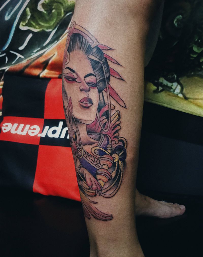 当前位置: 首页 >辽宁省沈阳市纹身店-骨雕部落刺青纹身图案>艺妓纹身图片_腿部新传统纹身图案