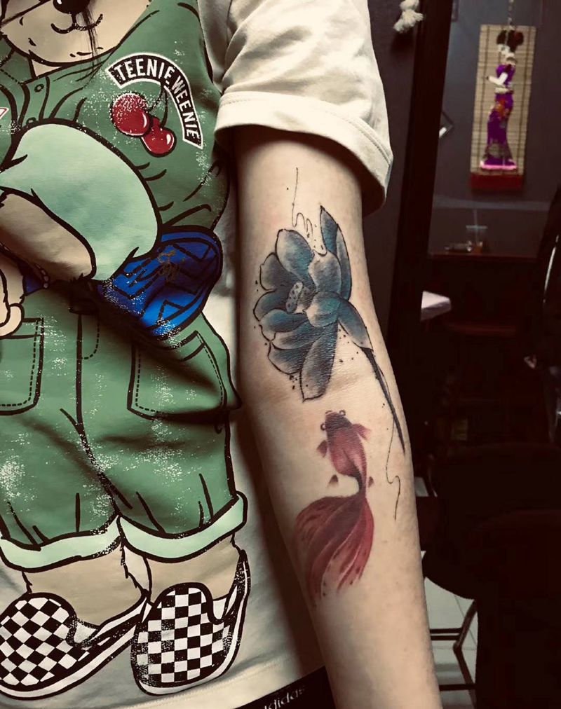 当前位置: 首页 >辽宁省沈阳市纹身店-骨雕部落刺青纹身图案>水墨风金鱼纹身图片_手臂水墨水彩金鱼水墨中国风纹身图案
