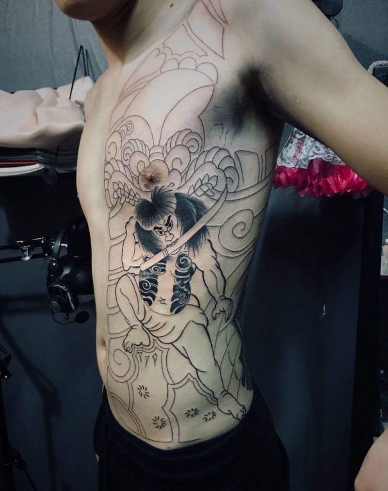 当前位置: 首页 >辽宁省沈阳市纹身店-骨雕部落刺青纹身图案>老传统线条纹身图片_胸部老传统开衫纹身图案