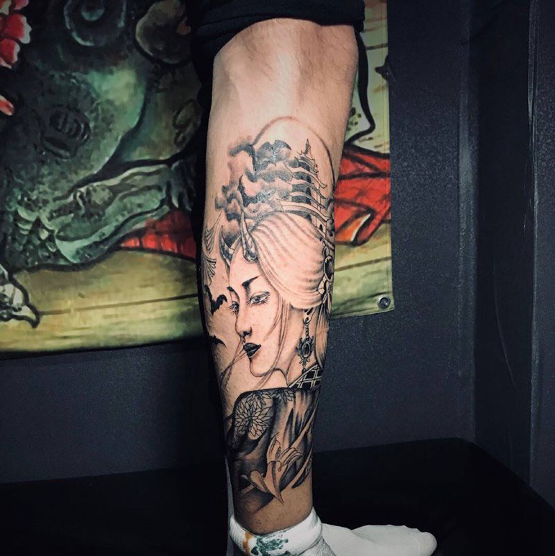 当前位置: 首页 >辽宁省沈阳市纹身店-骨雕部落刺青纹身图案>古风美女纹身图片_腿部新传统纹身图案