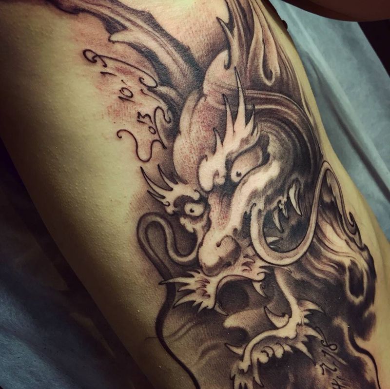 • T网红王老大花腿龙纹身图片_腿部新传统纹身图案