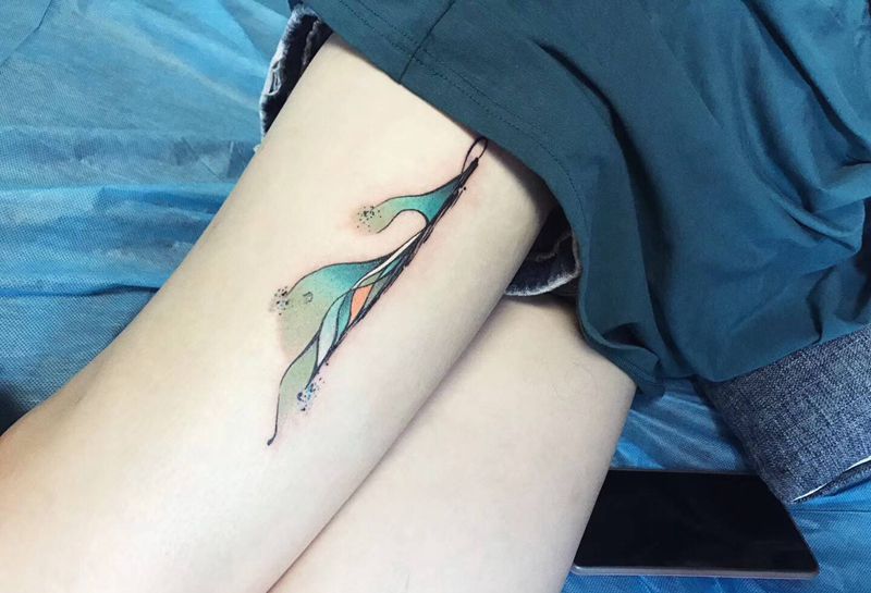 遮盖纹身图片_腿部水墨水彩纹身图案