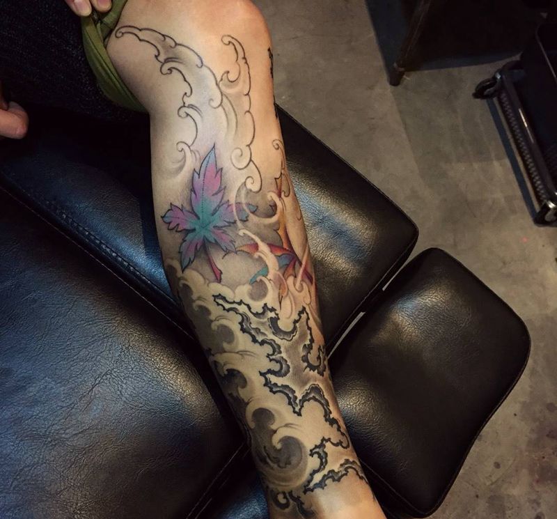 当前位置: 首页 >辽宁省沈阳市纹身店-纹名天下纹身图案>包小腿枫叶水浪纹身图片
