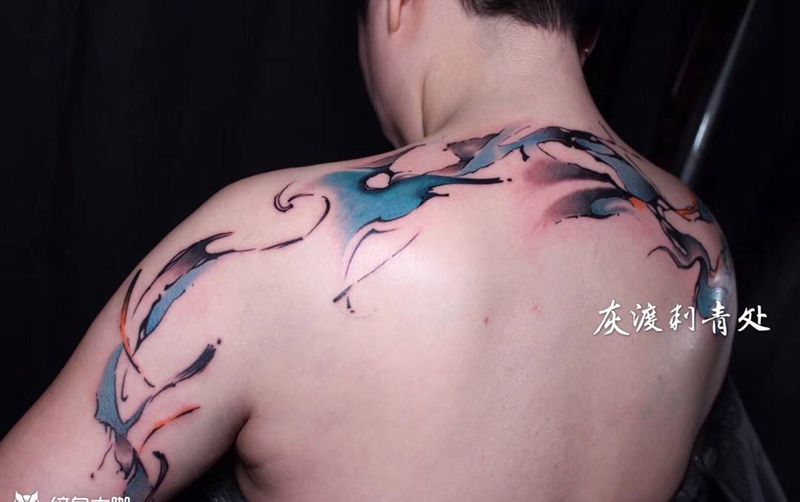 当前位置: 首页 >辽宁省大连市纹身店-灰渡刺青纹身图案>水墨肩画纹身图片