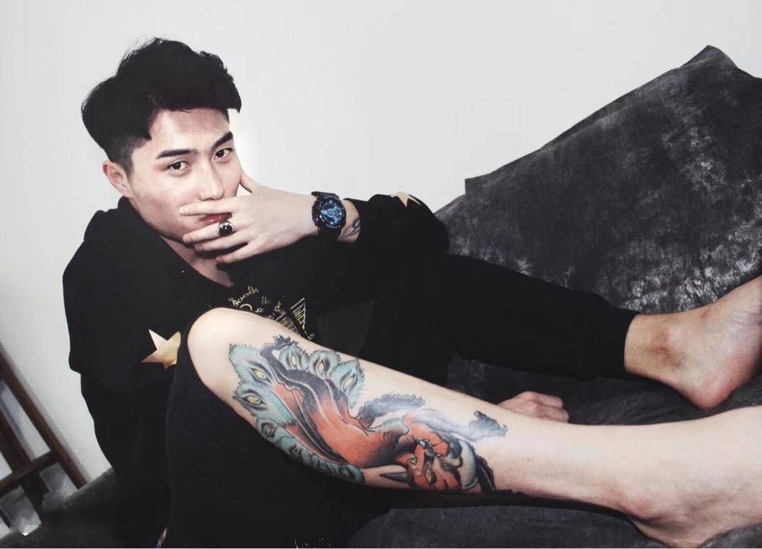• T网红王老大花腿龙纹身图片_腿部新传统纹身图案