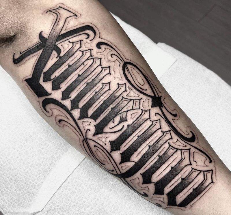 当前位置: 首页 >辽宁省沈阳市纹身店-合理刺青纹身图案>哥特花体字纹身图片_腿部花体字纹身图案