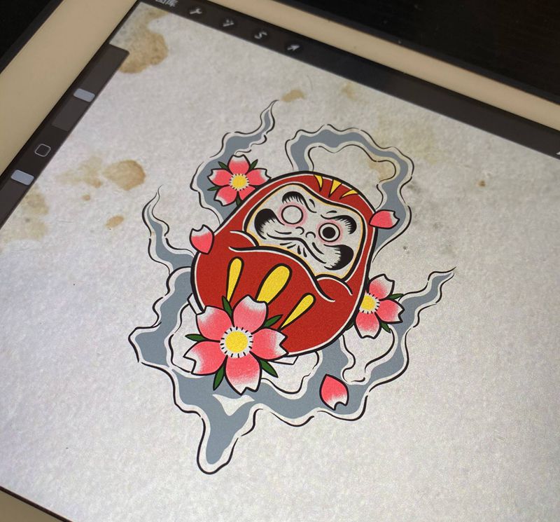 达摩蛋手稿纹身图片_手臂腿部老传统纹身图案