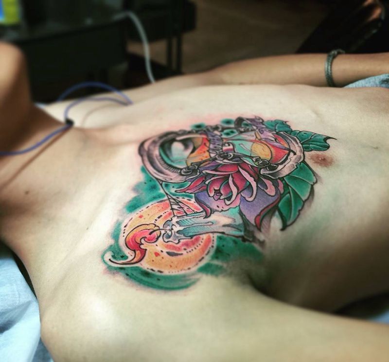 • 女性大花胸纹身_43张霸气漂亮的女性大花胸纹身图案作品