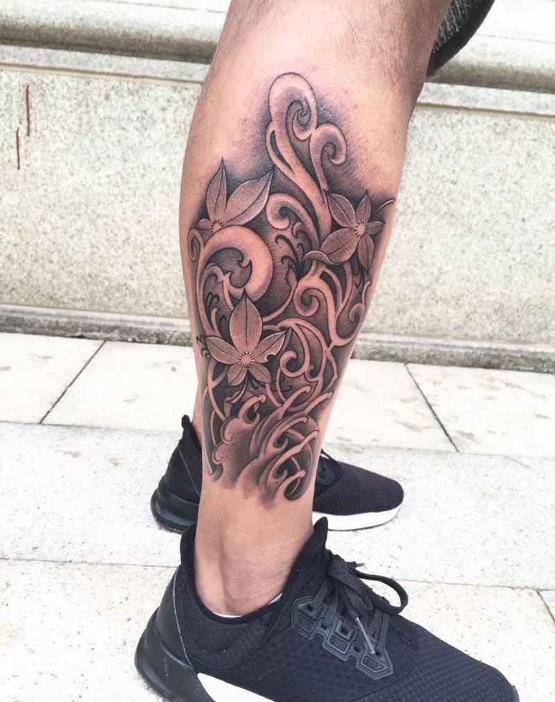 • T网红王老大花腿龙纹身图片_腿部新传统纹身图案