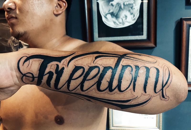当前位置: 首页 >辽宁省沈阳市纹身店-合理刺青纹身图案>手臂花体字.纹身图片_手臂花体字纹身图案