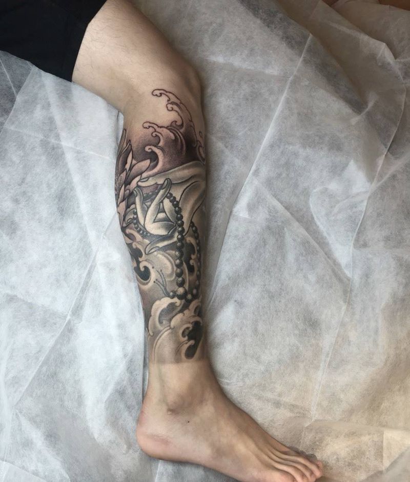 • T网红王老大花腿龙纹身图片_腿部新传统纹身图案
