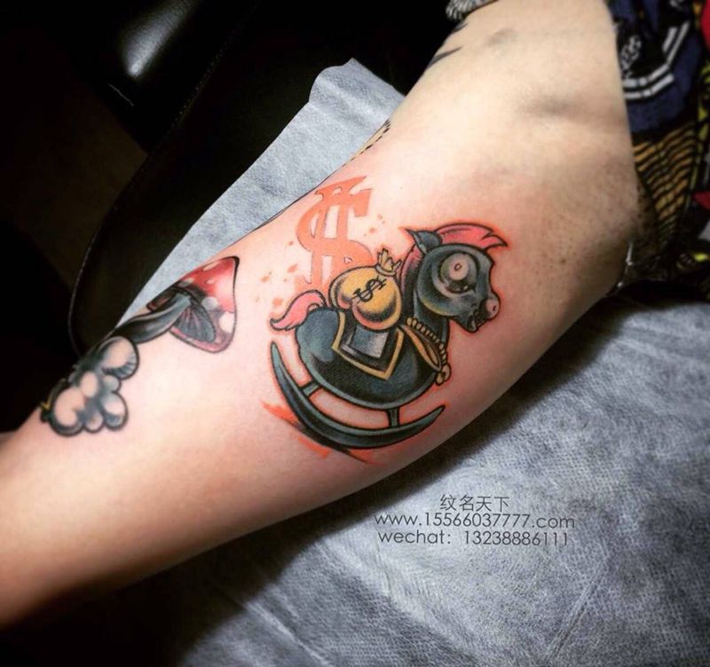 • T包小腿吹火男+阿多福纹身图片_腿部老传统新传统吹火男阿
