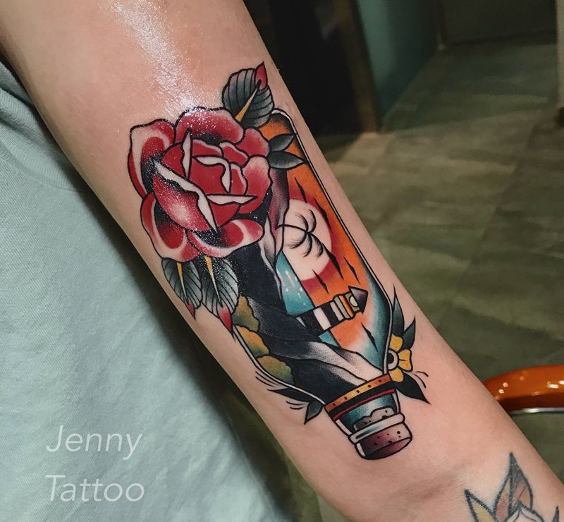 当前位置: 首页 >辽宁省大连市纹身店-玄铭堂纹身纹身图案>漂流瓶 遮盖设计纹身图片_手臂New SchoolOld School遮盖玫瑰风景纹身图案