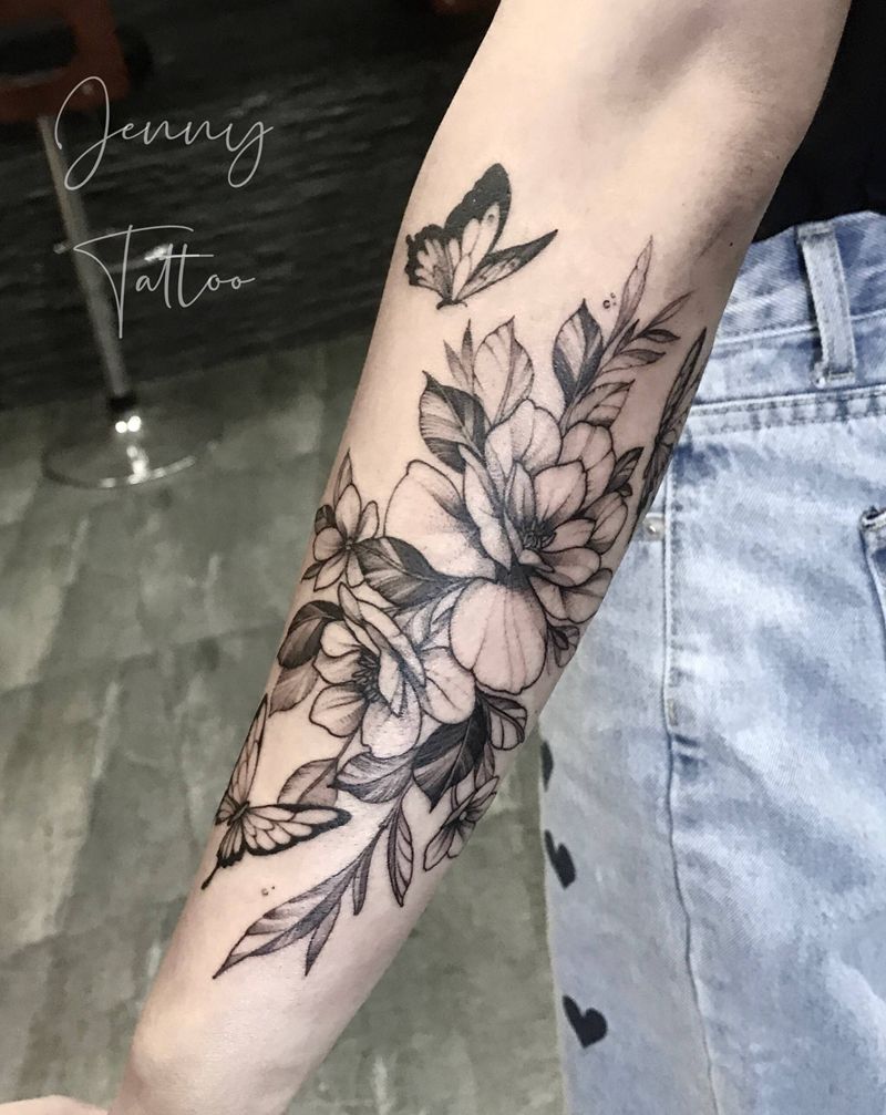 素花蝴蝶纹身图片_手臂点刺花蝴蝶纹身图案