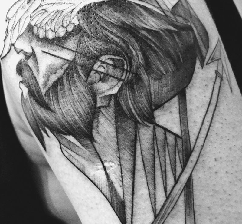 当前位置: 首页 >辽宁省大连市纹身店-玄铭堂纹身纹身图案>黑白线条纹身图片_成品手臂清新欧美人物纹身图案