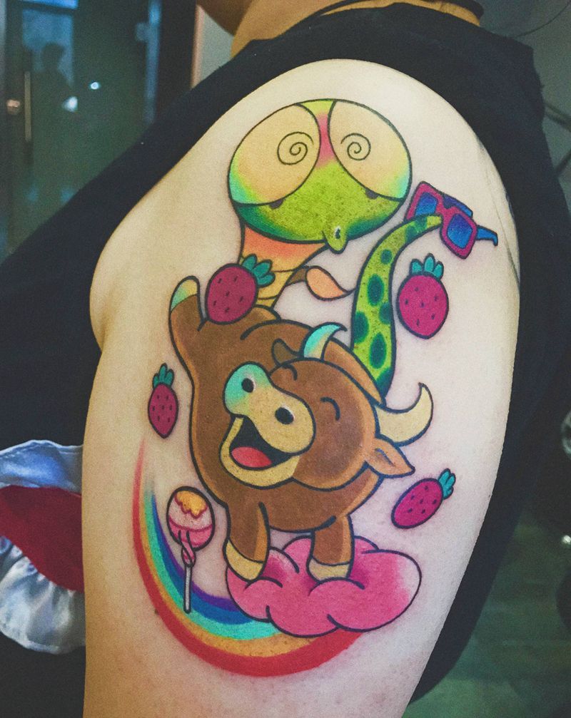 当前位置: 首页 >辽宁省大连市纹身店-玄铭堂纹身纹身图案>原创设计 生肖纹身图片_手臂New School生肖牛蛇纹身图案