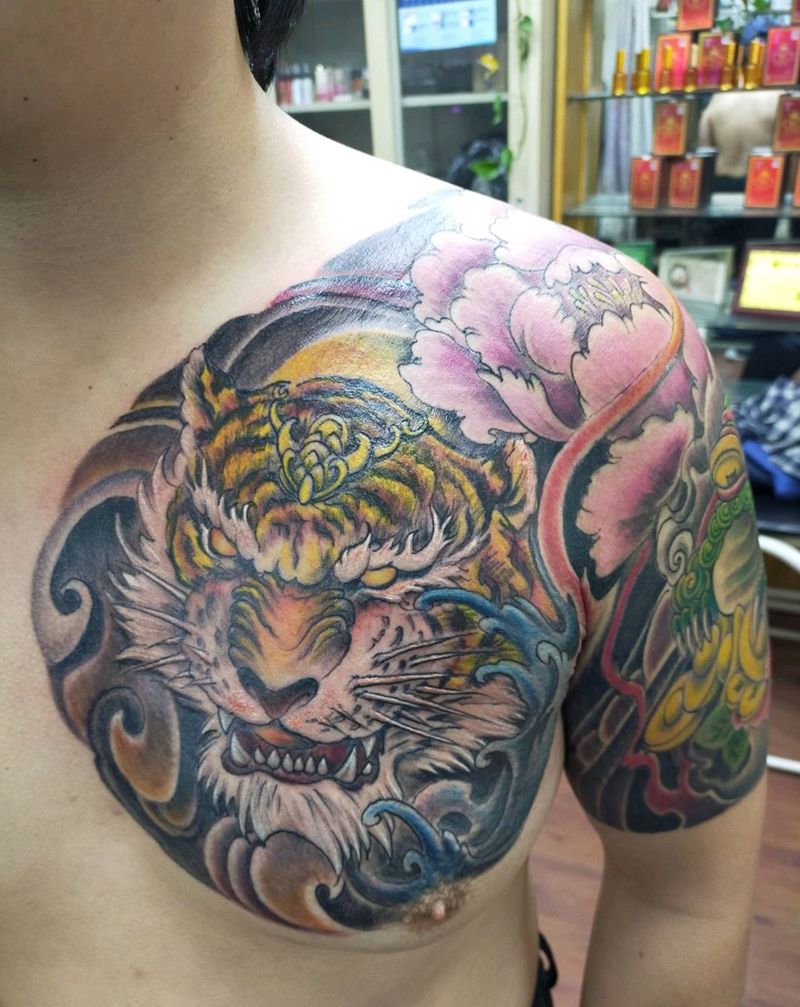 • 女性大花胸纹身_43张霸气漂亮的女性大花胸纹身图案作品