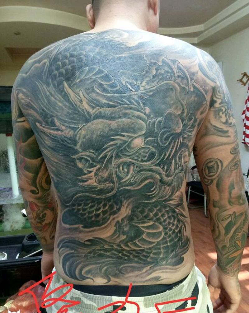 • T云龙九郎纹身图片_背部老传统云龙九郎纹身图案