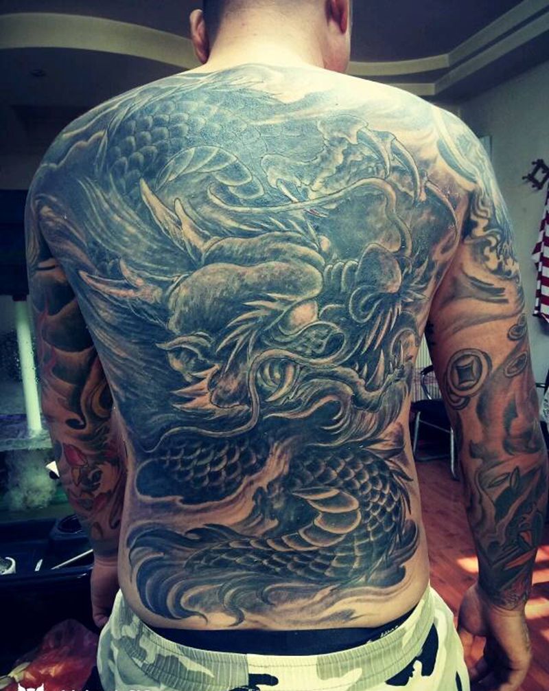 • T云龙九郎纹身图片_背部老传统云龙九郎纹身图案