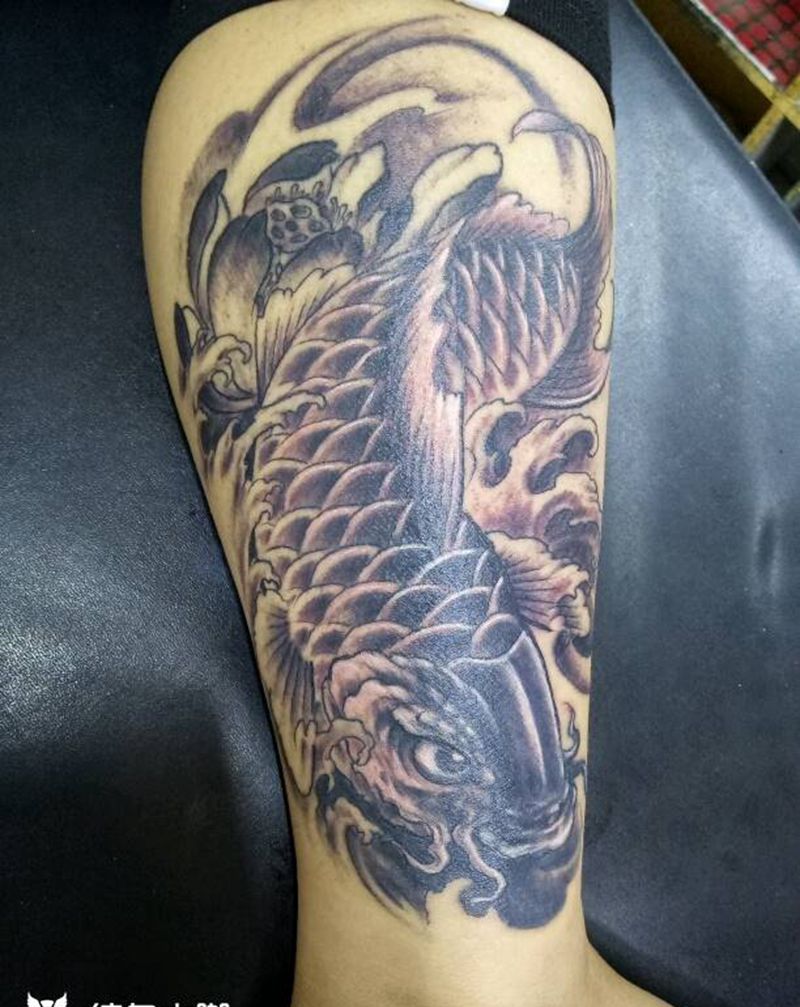 • T网红王老大花腿龙纹身图片_腿部新传统纹身图案