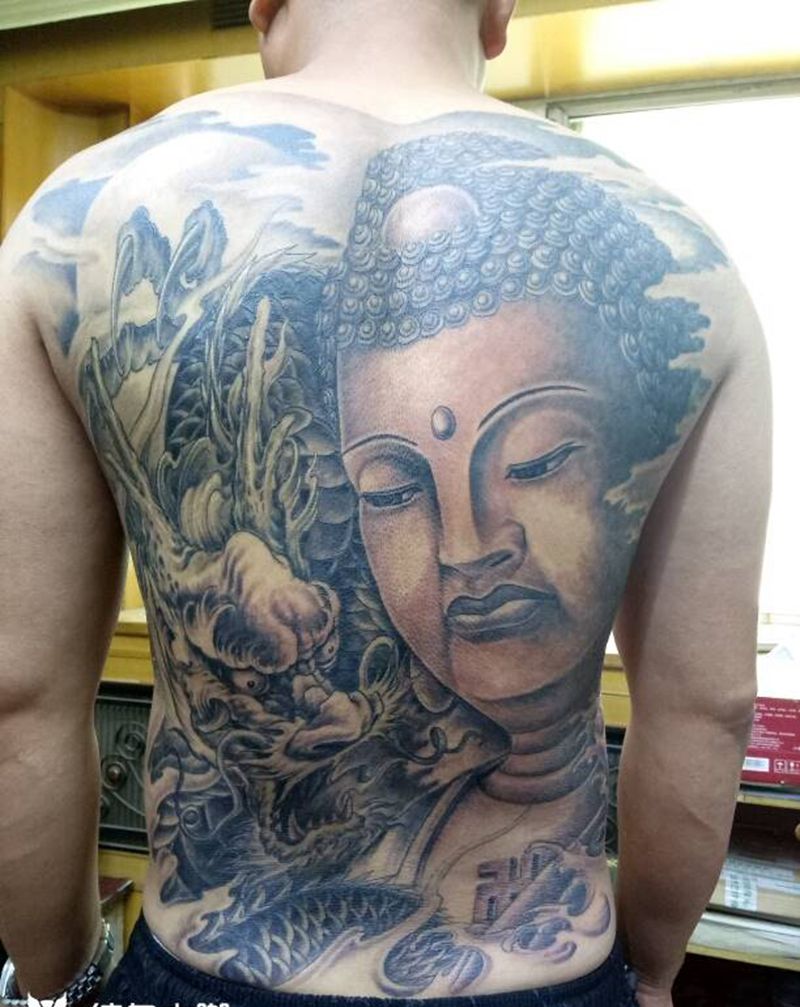 黑灰满背纹身图案