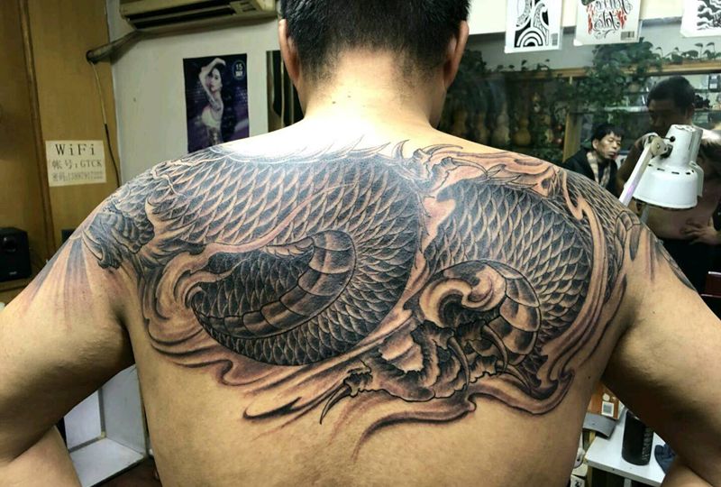 • 黑灰满背纹身图案