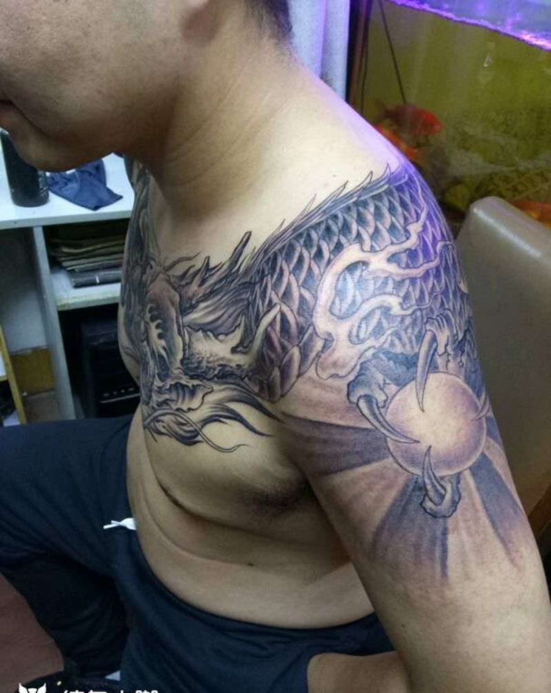 当前位置: 首页 >辽宁省沈阳市纹身店-新民光头刺客纹身艺术馆纹身图案>过肩龙纹身图片
