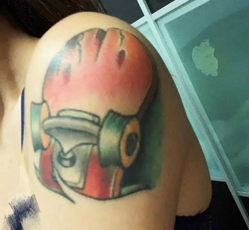 当前位置: 首页 >辽宁省大连市纹身店-方脸哪吒刺青纹身图案>旧物改造纹身图片_手臂Old School滑板风景纹身图案