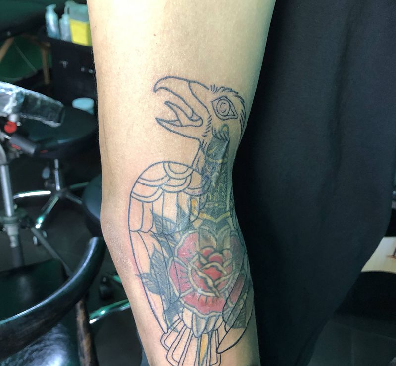 当前位置: 首页 >辽宁省大连市纹身店-方脸哪吒刺青纹身图案>乌鸦遮盖纹身图片_手臂Old School乌鸦纹身图案