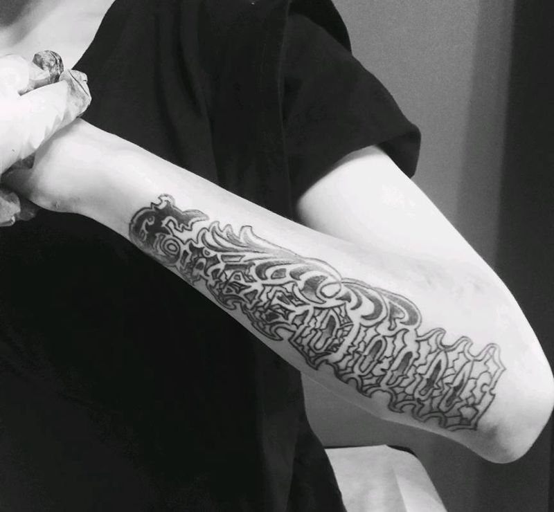 花体字纹身图片_手臂花体字纹身图案