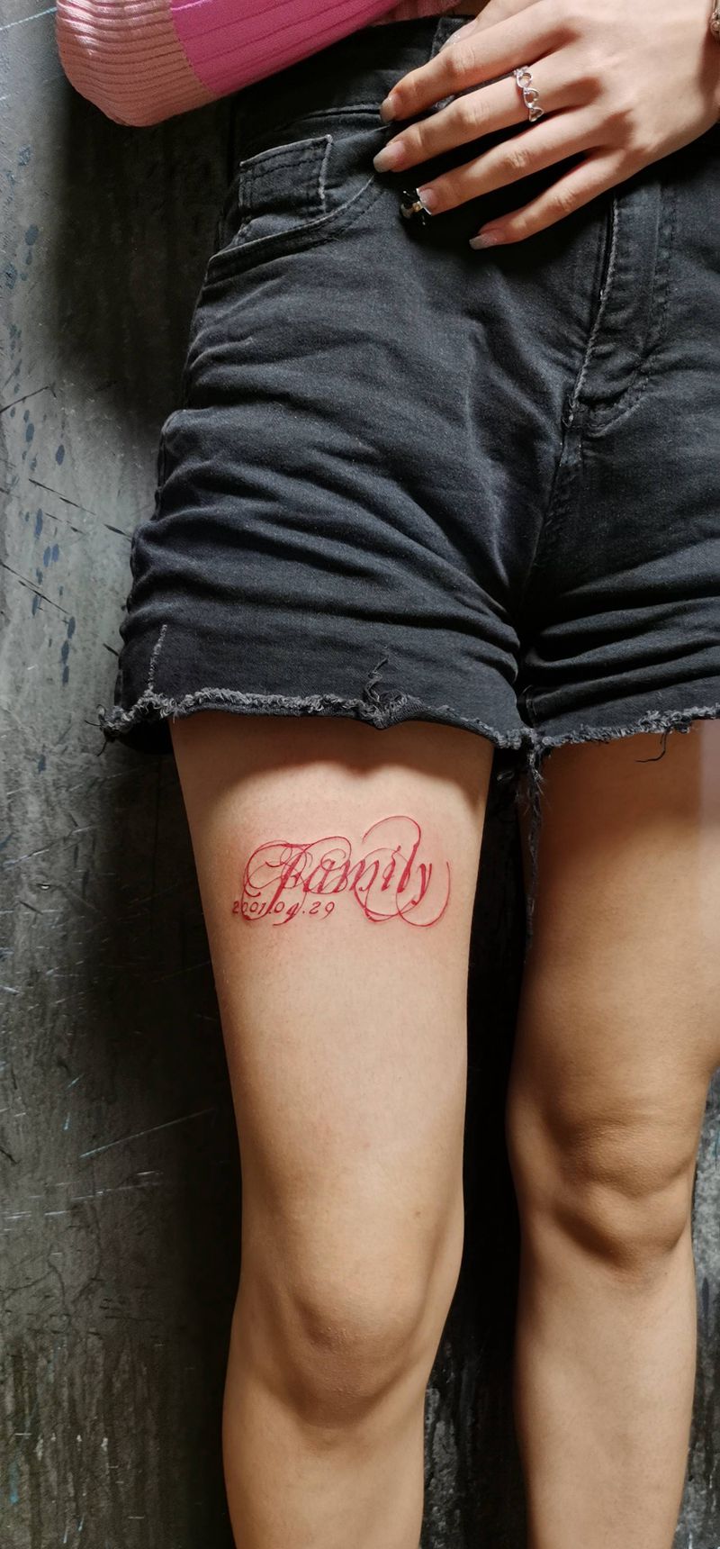 当前位置: 首页 >辽宁省大连市纹身店-大连·無畏刺青纹身图案>花体字 家庭纹身图片_腿部花体字纹身图案