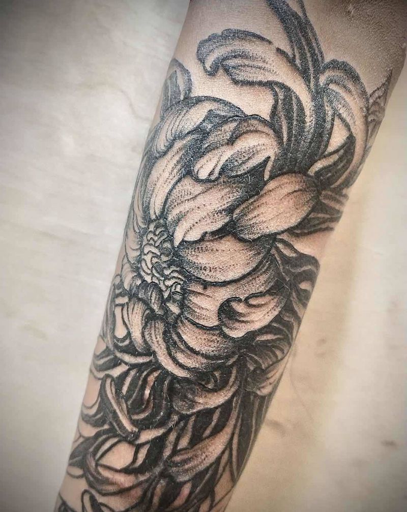 小臂遮盖菊花纹身图片_手臂新传统菊花纹身图案