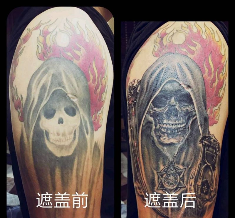 遮盖纹身图片_手臂欧美写实遮盖纹身图案