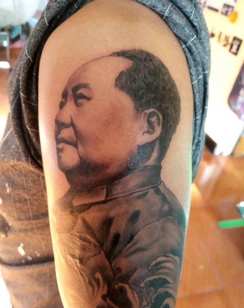伟大的毛爷爷纹身图片_手臂欧美写实纹身图案