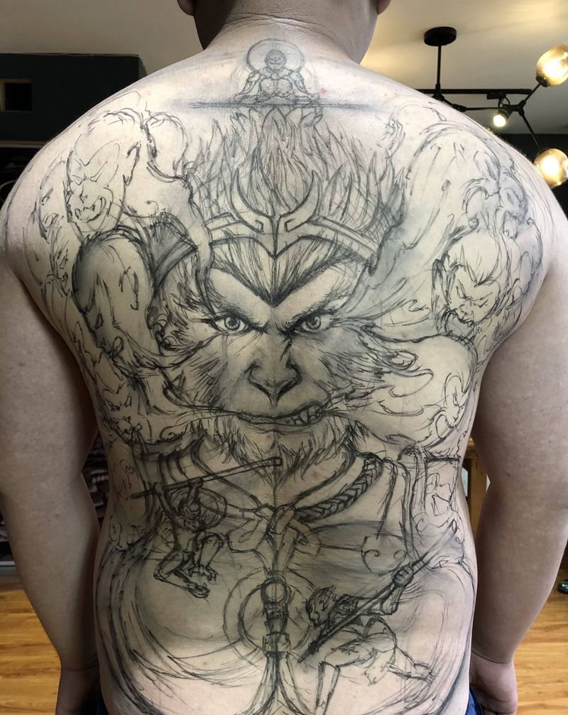 《斗战胜佛之噬天魔猴》纹身图片_背部欧美写实新传统纹身图案