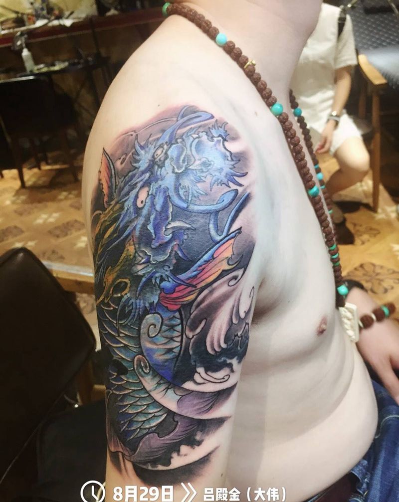 • T网红王老大花腿龙纹身图片_腿部新传统纹身图案