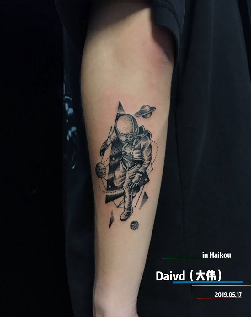当前位置: 首页 >辽宁省大连市纹身店-金势刺青TATTOO纹身图案>点刺宇航员纹身图片_手臂点刺几何纹身图案