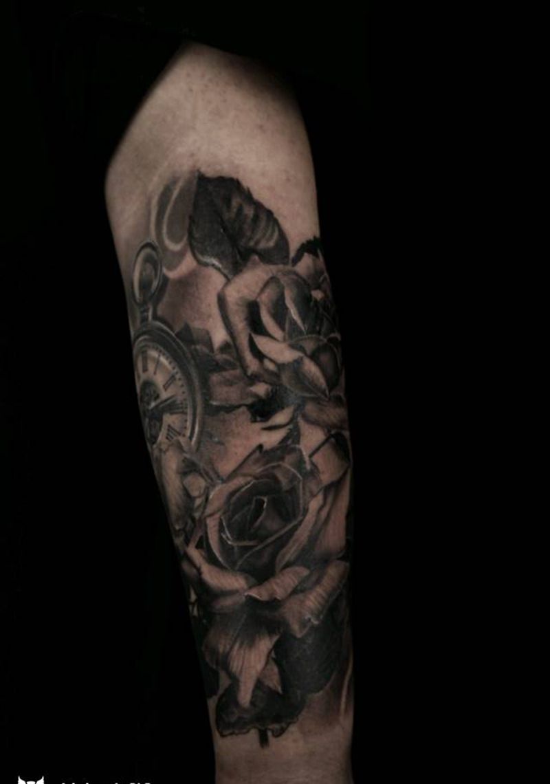 小臂全包黑灰写实作品纹身图片_手臂欧美写实纹身图案