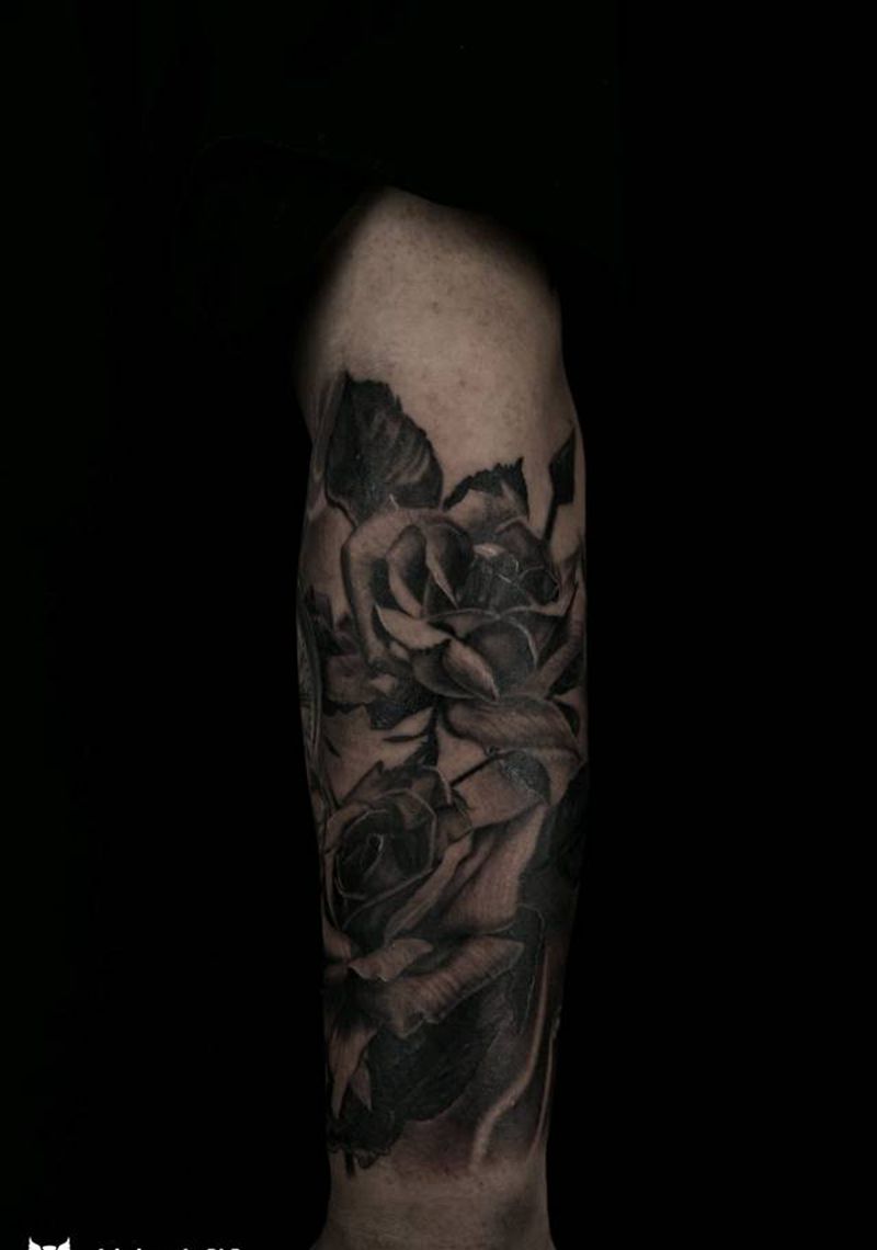 当前位置: 首页 >辽宁省大连市纹身店-时间刺客纹身图案>小臂全包黑灰写实作品纹身图片_手臂欧美写实纹身图案