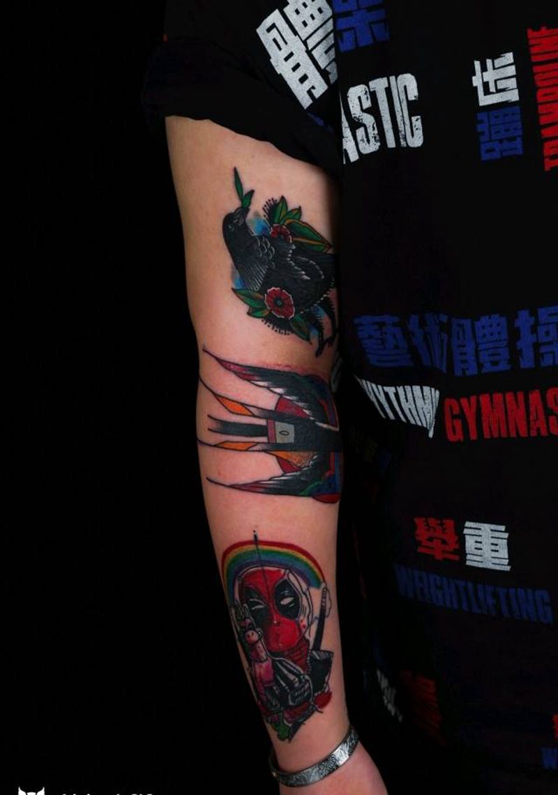 当前位置: 首页 >辽宁省大连市纹身店-时间刺客纹身图案>旧图遮盖school纹身图片_手臂New School纹身图案