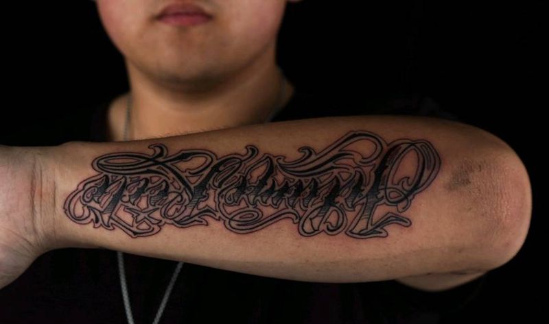 当前位置: 首页 >辽宁省大连市纹身店-时间刺客纹身图案>小臂花体字纹身图片_手臂花体字纹身图案